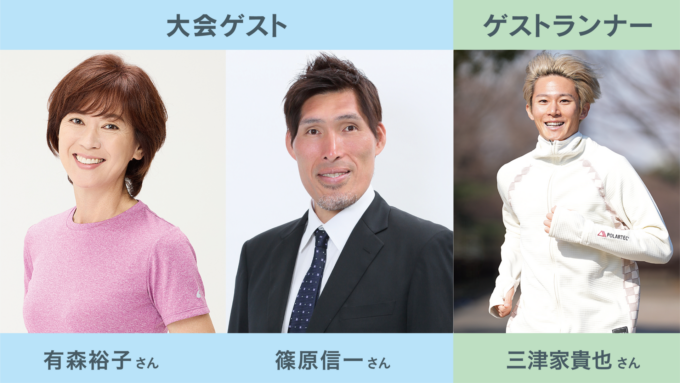 大会ゲストは安曇野市スポーツ大使の有森裕子さんと篠原信一さん、ゲストランナーはランニングアドバイザーとして幅広く活躍している三津家貴也さんです!